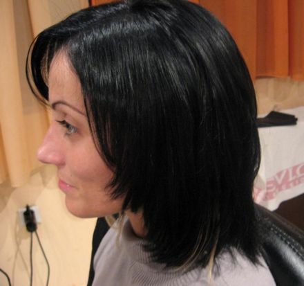 Kicsit megnövelt enyhén asszimetrikus oldalhossza mellett, csak az a néhány havasszőke melír jelentett újat amit közévegyítettünk.